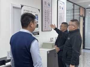 来访领导在恒泰克创始人陪同下,实地考察了恒泰克运营中心、智能产品展厅以及智能制造车间。